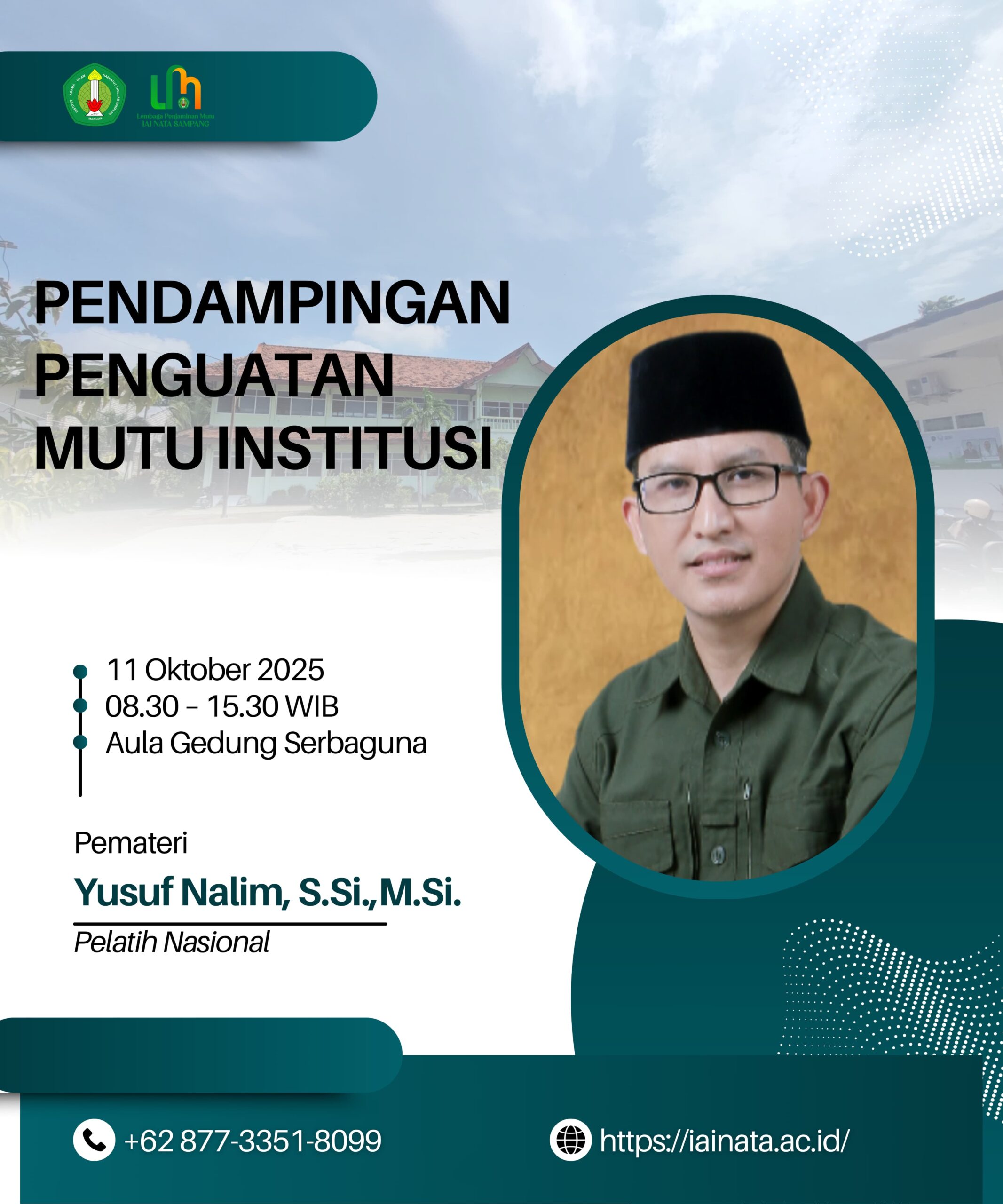 Sampang, iainata.ac.id — Institut Agama Islam (IAI) Nazhatut Thullab Sampang menyelenggarakan kegiatan Bimbingan Teknis (Bimtek) Penyusunan Laporan Evaluasi Diri (LED) dan Laporan Kinerja Perguruan Tinggi (LKPT) 4.0. Sabtu, 11 Oktober 2025.